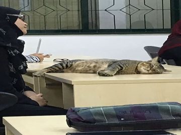 Cat Walks Into Malaysian University Classroom, Falling Asleep Due To Boring Lecture. Credit: Nur Elynna Binti We’ve all had morning classes in university that were...