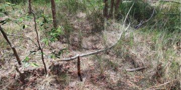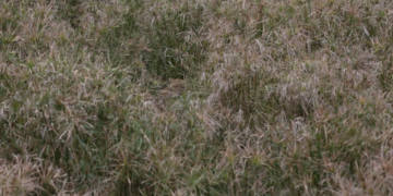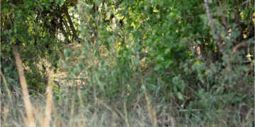 Disguised by fences and reeds, the cat is almost impossible to spot.