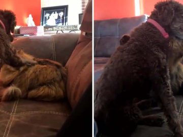 An adorable video of a dog stroking a cat before the pair seemingly hug is melting animal lovers’ hearts. Jordan Ireland captured the sweet moment...