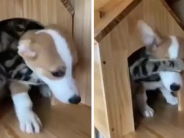 The Chihuahua had no idea it was about to be pranked. While we don’t know whether the cat realises that someone or something is about...
