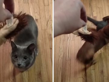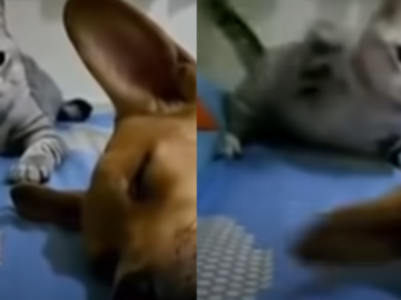 Watch What Happens When The Cat Takes Too Long To Make A Move Penny the chiweenie (a cross between a chihuahua and a dachshund) rudely...