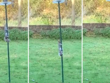 Squirrel Gives 100% The squirrel desperately tries to scrabble up, his legs moving faster and faster but he cannot get any further up. After exhausting...