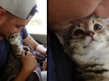 This man saved a tiny kitten. This is the moment when he brought him into his car and held him in his arms. Just look...