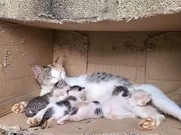 A cat once loved by its owner has been abandoned in a cruel world and must fend for itself. The cat was pregnant and helpless...