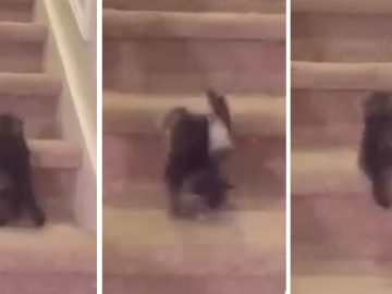 This is just too cute for words! Watch this chubby kitten whose name is Winston as he is faced with going down the stairs for...