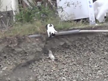 Mother Cat To The Rescue In this video we see a young kitten in trouble, he’s fallen down an embankment and is struggling to climb...
