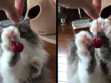 AS GENTLE AS A CAT TOUCHING A CHERRY Video of cat touching a cherry is a heart-melting example of adorable gentleness. This cat has been...