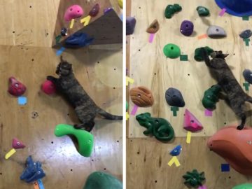 Cat Masters Climbing Wall A vcat named Lalah logically negotiated the plastic finger holds along an indoor climbing wall as she systematically climbed her way...