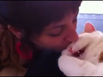 A rescued cat was overjoyed to be able to find a mother for the rest of his life and he showed it by hugging her...