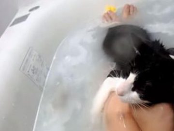 While most kitties absolutely hate being in the water and getting wet, this adorable tuxedo kitty in Japan is the opposite. Moo, the kitty absolutely...