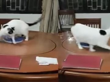The curious kitty in the video clip below decided to walk onto a Lazy Susan, but we’re pretty sure the cat later regretted doing this!...