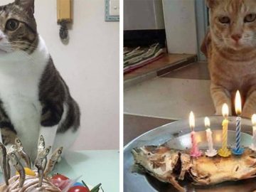 Let us take a look at the photos below which show how these lucky cats give various reactions to their birthday cakes! This cat does...