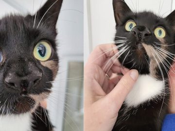 Cats Protection’s Warrington Adoption Center recently took in a homeless four-year-old black and white moggy. They quickly noticed she had a huge nose, but a...