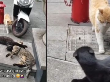 A funny video has surfaced showing a cheater cat caught red-handed with another cat – a rival, no less. The hilarious clip captures a black...
