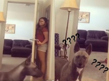 Dogs usually have a weird way of sticking to their owner’s side. In this video, the owner is playing hide and seek with her dog....