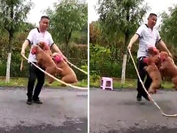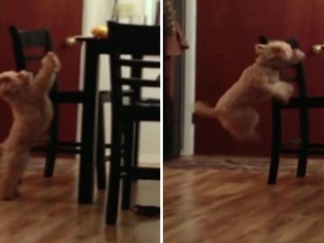 The incredible moment four poodles skip a rope with their owner. This video of a man and his poodles jumping rope together is going to...