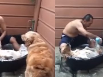 It’s tough to get most dogs to take a bath, as any dog owner can attest. However, this particular dog seems to be an exception,...