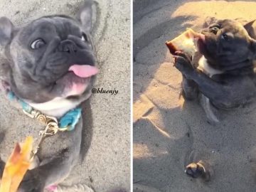 French bulldog is slip slidin’ away in the snow Watch this French Bulldog get a running start and dive head first into the snow. In...