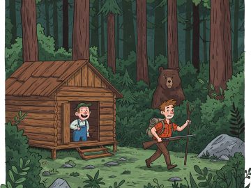 Two men went bear hunting. While one stayed in the cabin, the other went out looking for a bear. He soon found a huge bear,...