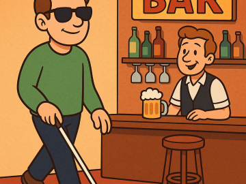 A blind man walks into a hotel in Texas… He goes to the bar and hops up on a giant barstool. “Boy, this seat is...