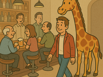 A guy walks into a bar with a giraffe. They sit down on two stools at the front and the guy says to the barman...