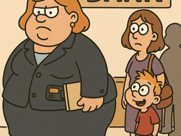 Lil’ Johnny’s mother took him with her to the bank on a busy Friday. They were in line behind a rather obese lady wearing a...