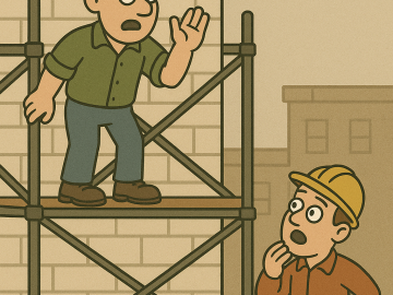 An Irishman on a scaffolding four stories high heard the noon whistle. But when he would have descended, he found that the ladder had been...