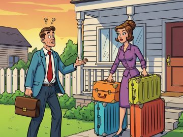 A man came home from work one day to find his wife on the front porch with her bags packed. ‘Just where the heck do...