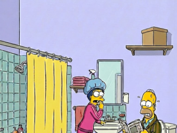 This picture shows a normal everyday moment in the bathroom of the Simpson family. Everything looks familiar and ordinary at first — just a typical...
