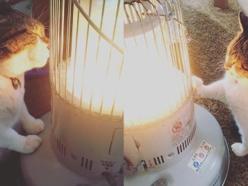 This Adorable Chubby Cat Obsessing with a Heater During Cold Weather