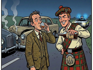 A Scotsman who was driving home one night, ran into a car driven by an Englishman. The Scotsman got out of the car to apologize...