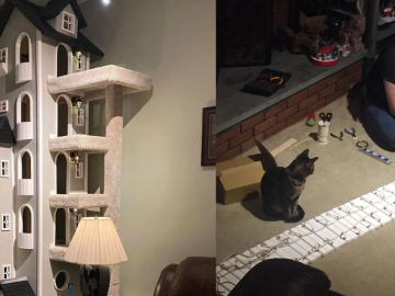 Cats love sitting in high places to observe their surroundings. Rob Coutu from Windsor, Connecticut, built two impressive towers for his cats. These towers provide...