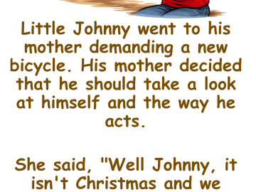 Little Johnny went to his mother demanding a new bicycle. His mother decided that he should take a look at himself and the way...