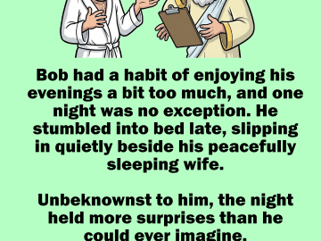 Bob had a habit of enjoying his evenings a bit too much, and one night was no exception. He stumbled into bed late, slipping in...