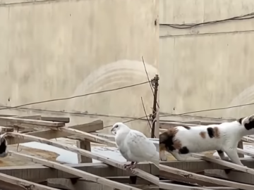 At first, the cat in a crouched position approached the dove on a roof slowly as it hunted her. But something surprising happens. The cat...