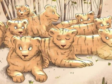 In order to solve this optical illusion, just picture a pack of tigers lazing around under some trees. But did you overlook anything? A jaguar...