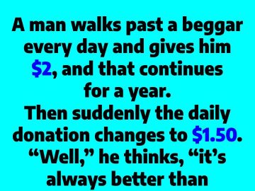 A man walks past a beggar every day and gives him $2.00 and that Continues for a year. Then suddenly the daily donation changes to...