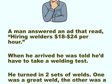 A man answered an ad that read, “Hiring welders $18-$24 per hour.” When he arrived he was told he’d have to take a welding test....