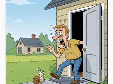 A man is sitting at home watching T.V. when he hears a knock at the door. The man gets up and answers the door, and...