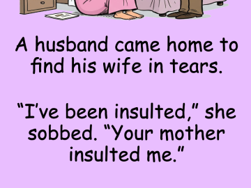 A husband came home to find his wife in tears. “I’ve been insulted,” she sobbed. “Your mother insulted me.” “My mother!” he exclaimed. “But she...