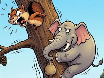A squirrel is living in a pine tree. One day it starts to shake and rock so he looks outside and he sees a large...
