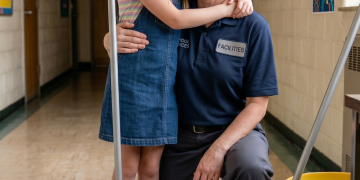 Kyla had this quiet charm about her, like a kid raised to take up as little room as possible. She’d squat down next to Scout keeping both hands on his fur, whispering things nobody else was allowed to catch. I’d look out the kitchen window and spot them sitting together—her tiny fingers tangled up in his yellow coat, his head resting right beside her.