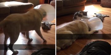 Hilarious Cat Holds Dog’s Leash and Refuses Let Her Friend Walk Away.