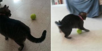 You’ve Never Seen A Cat Play With A Tennis Ball Like This.