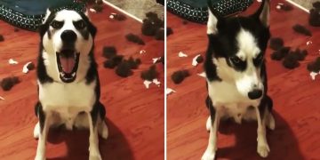 Siberian Husky Eats Bed and Throw Tantrum When Mom Confronts Him.