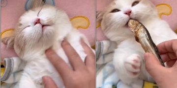 Funny video: A Sleeping Cat Wakes up for Eating Fish.
