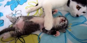 Mama Cat Calms Her Kitten Down From A Nightmare!