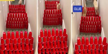 Watch Multiple Cats Attempt To Jump Over Walls Of Cups.