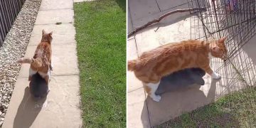 Neighbor Cat Politely And Patiently Waits Outside Everyday To Play With His BFF