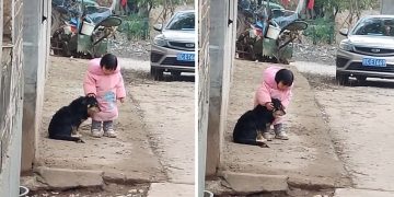 Little girl comforts dog by covering its ears during fireworks. Video melts hearts.